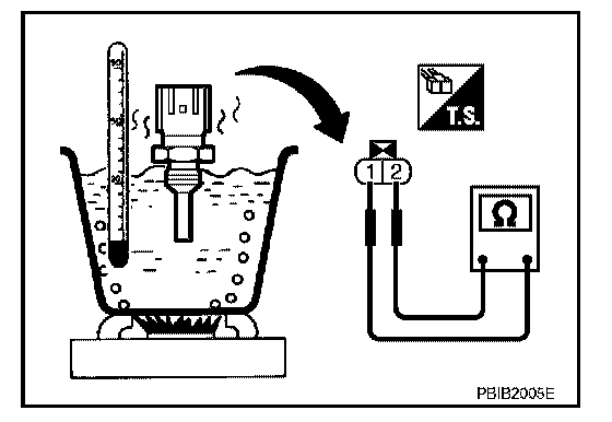 1. Check resistance between engine coolant temperature sensor terminals 1 and 2 as shown in the figure.