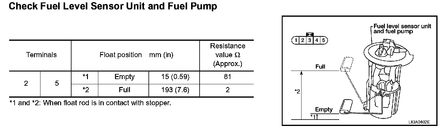 FUEL LEVEL SENSOR UNIT CHECKFor removal, refer to "Removal and Installation".