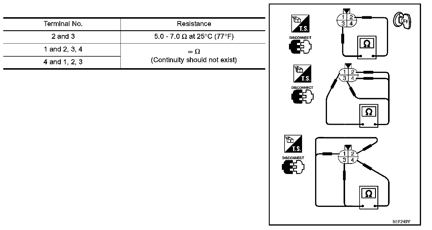 Check resistance between terminals 3 and 4.