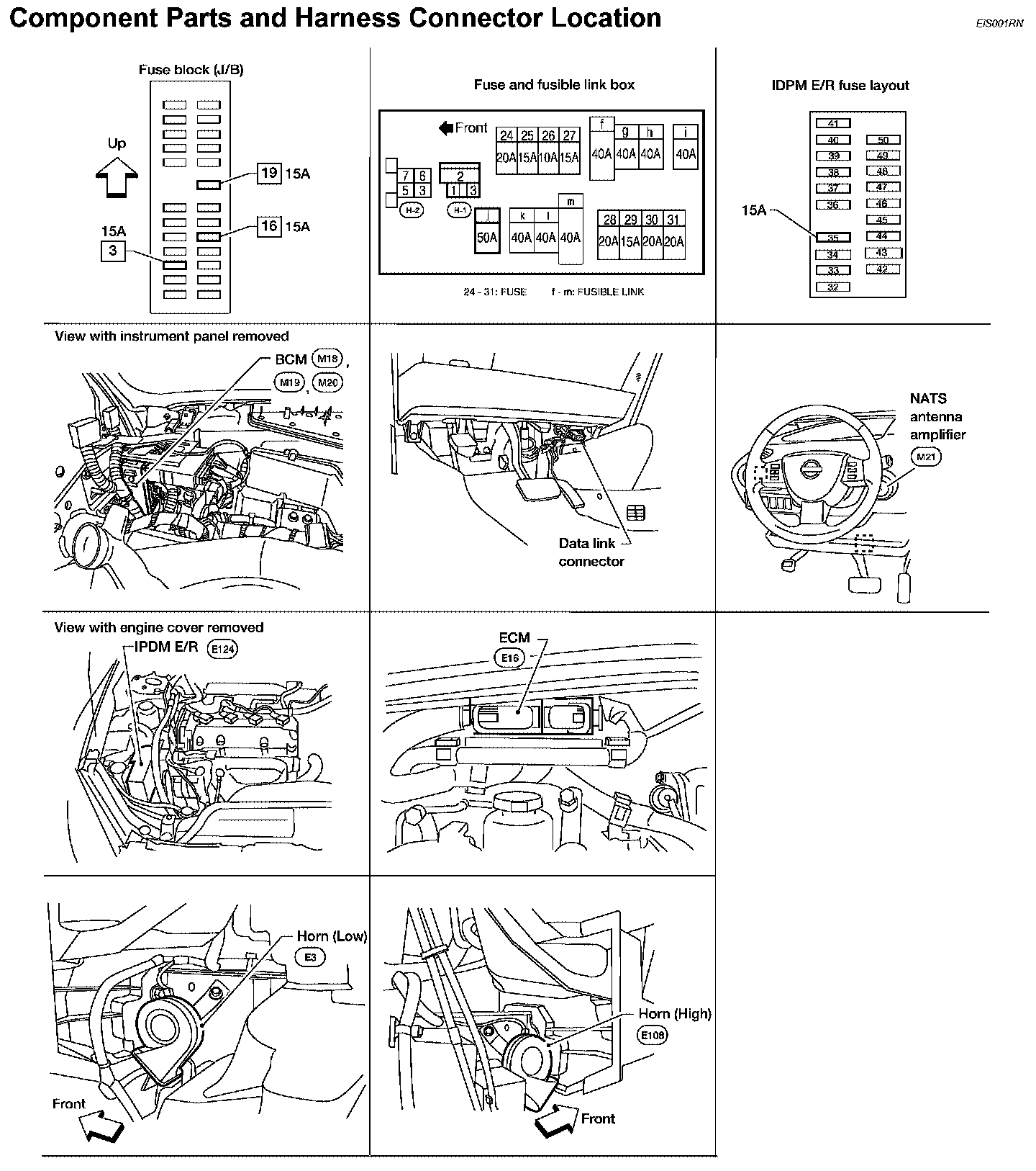 Component Parts And Harness Connector Location: