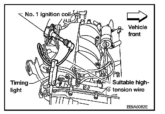 2. Attach timing light to the ignition coil No.1 wires as shown in the figure.