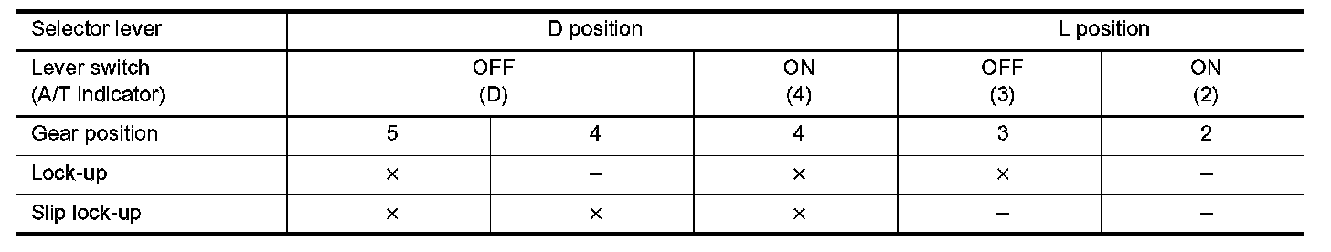 Lock-up Operation Condition Table