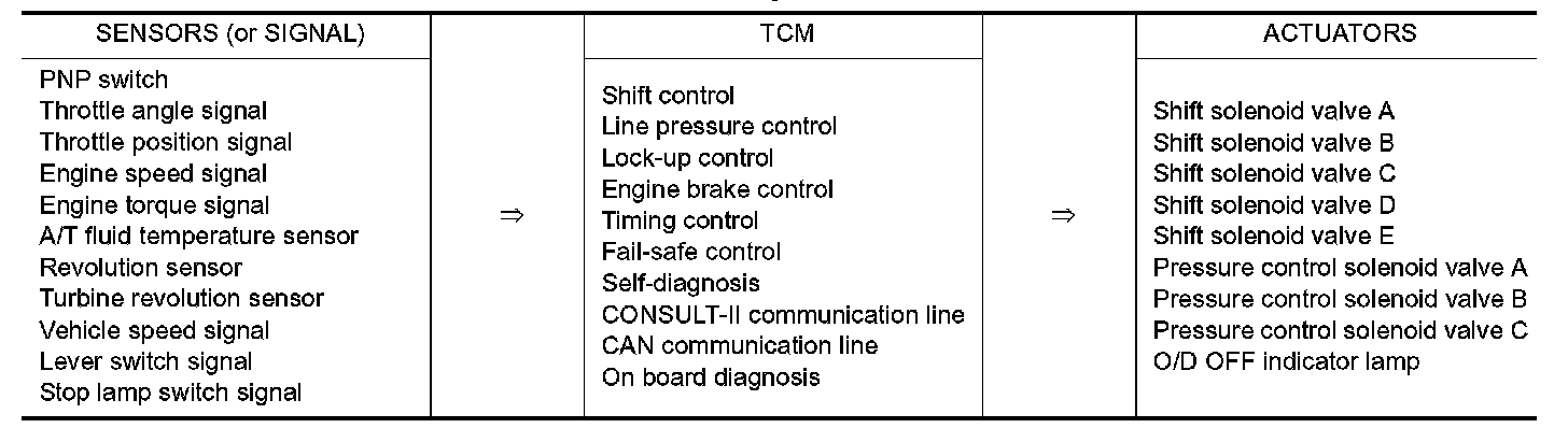 ^ Determine required line pressure, shifting point, lock-up operation, and engine brake operation.