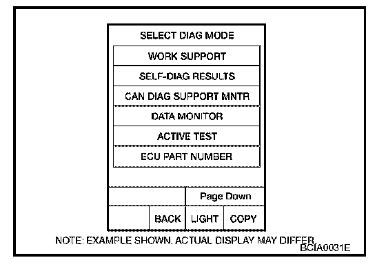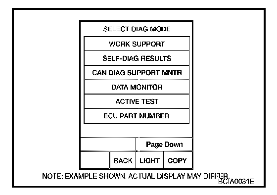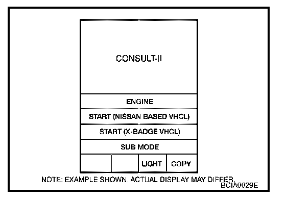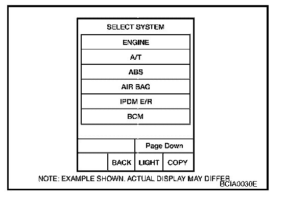 3. Touch "BCM" on "SELECT SYSTEM" screen. If "BCM" is not indicated, go to LAN System to check data link connector (DLC) circuit.