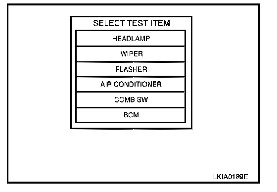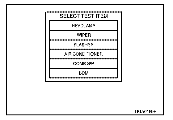 4. Touch "BCM" on "SELECT TEST ITEM" screen.