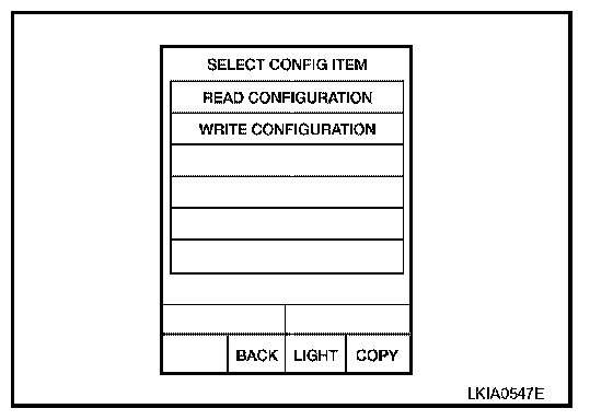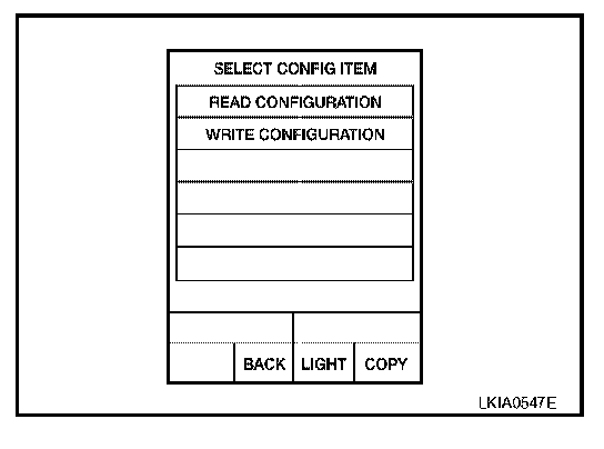 7. Touch "READ CONFIGURATION" on "SELECT CONFIG ITEM" screen.