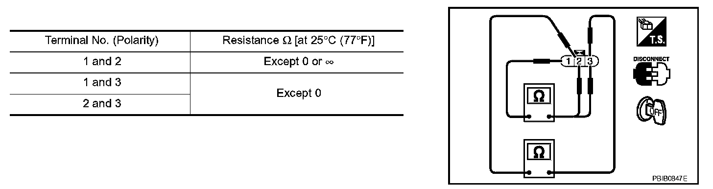 3. Check resistance between ignition coil terminals as given.