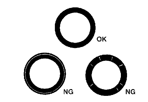 ^ If not, grind to adjust valve fitting and check again. If the contacting surface still has N.G conditions even after the re-check, replace valve seat.