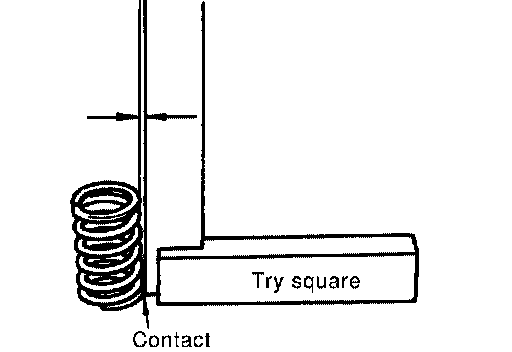 Set try square along the side of valve spring and rotate the spring. Measure the maximum clearance between the top face of spring and try square.