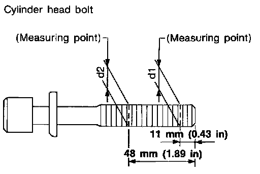 CAUTION: Cylinder head bolts are tightened by degree rotation tightening method. Whenever the size difference between d1 and d2 exceeds the limit, replace the bolts with new ones.