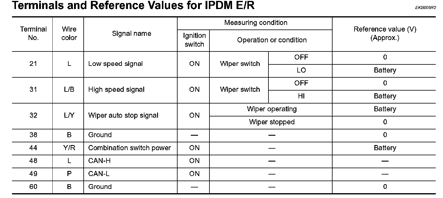 Terminals And Reference Values For IPDM E/R: