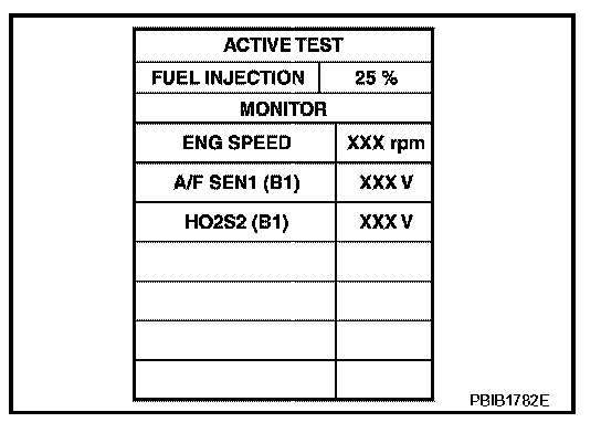 6. Check "HO2S2 (B1)" at idle speed when adjusting "FUEL INJECTION" to ±25%.