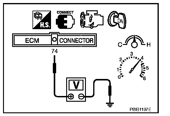 5. Set voltmeter probes between ECM terminal 74 (HO2S2 signal) and ground.