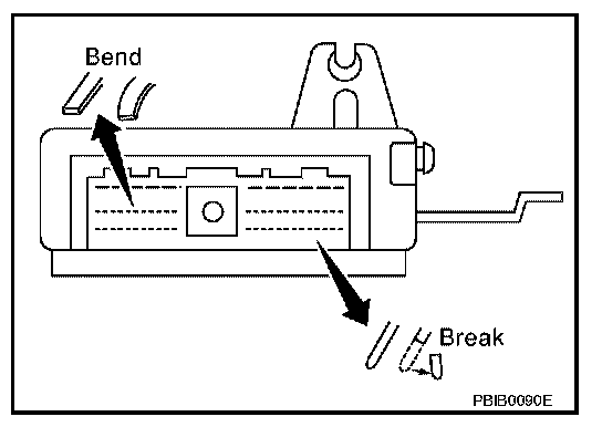 - When connecting or disconnecting pin connectors into or from ECM, take care not to damage pin terminals (bend or break). Make sure that there are not any bends or breaks on ECM pin terminal, when connecting pin connectors.