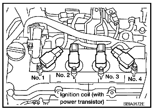 The ignition signal from the ECM is sent to and amplified by the power transistor. The power transistor turns ON and OFF the ignition coil primary circuit. This ON/OFF operation induces the proper high voltage in the coil secondary circuit.