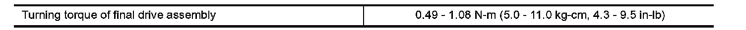 TABLE FOR SELECTING DIFFERENTIAL SIDE BEARING ADJUSTING SHIMS