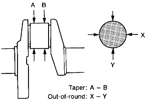 2. With a micrometer, measure journals for taper and out-of-round.