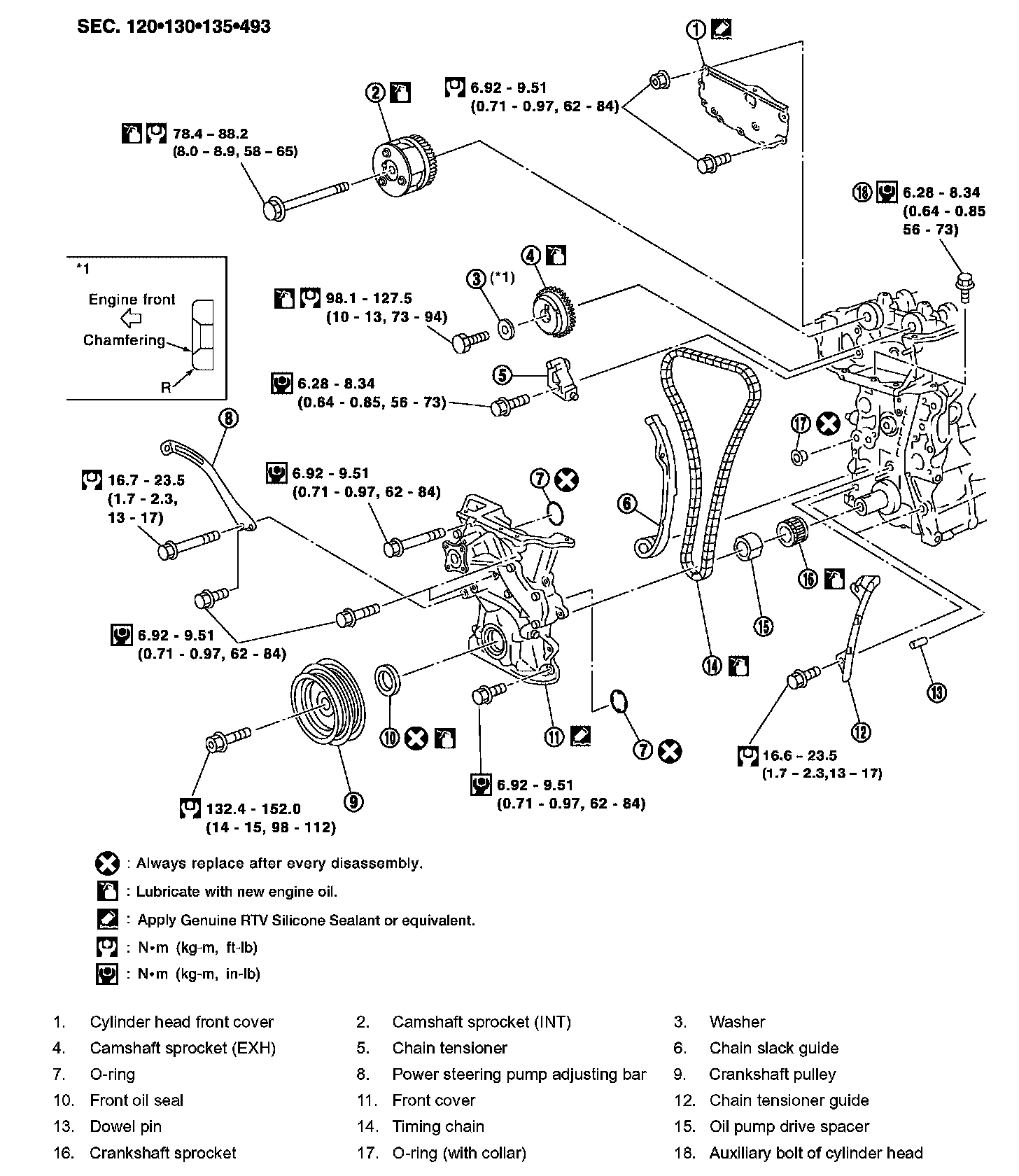 132.4 - 152.0 Nm (14 - 15 kg-m, 98 - 112 ft. lbs.)