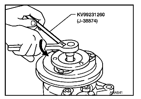 - After tightening the bolt, check that the pulley rotates smoothly.