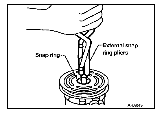 - Remove the snap ring using external snap ring pliers.