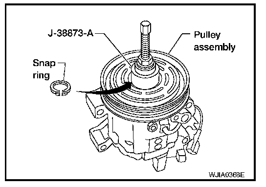 - Install the pulley assembly using the installer, and then install the snap ring using snap ring pliers.
