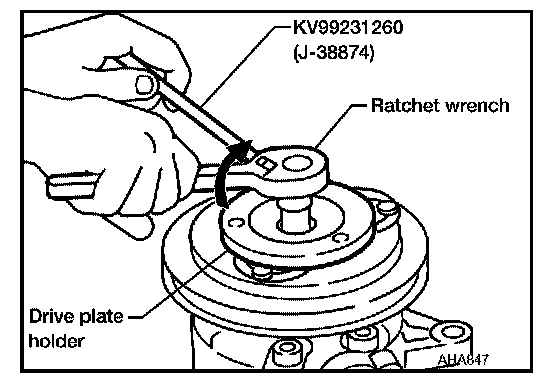 - When removing center bolt, hold clutch disc with clutch disc tool.