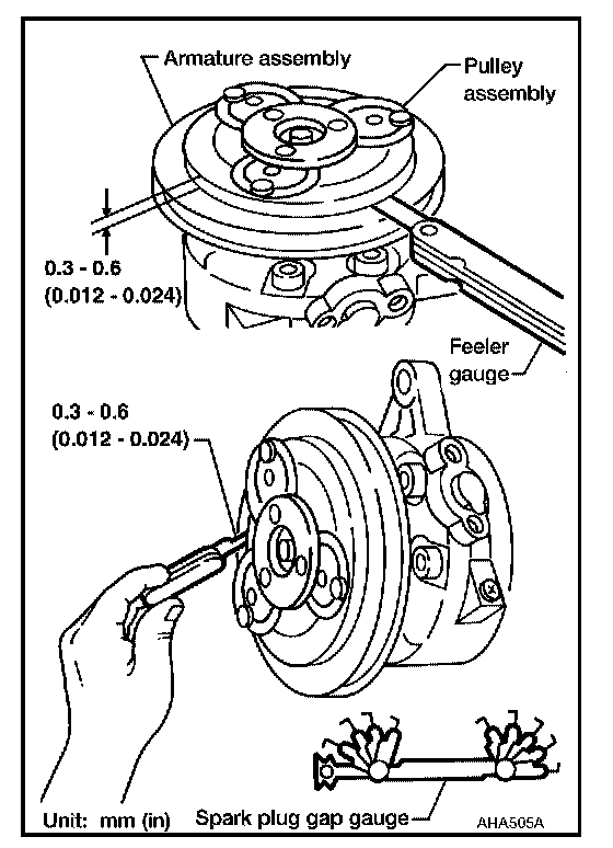 Clutch disc-to-pulley clearance : 0.3 - 0.6 mm (0.012 - 0.024 in)