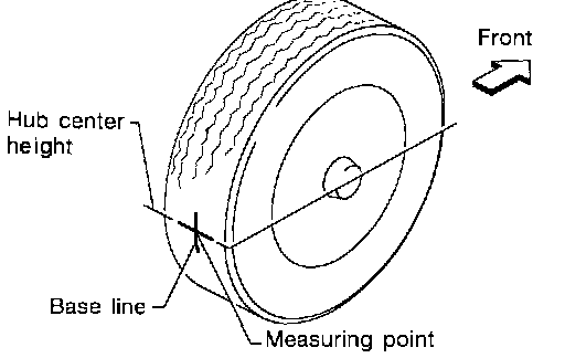 3. Put a mark on base line of the tread (rear side) of both tires at the same height of hub center. This mark is a measuring point.