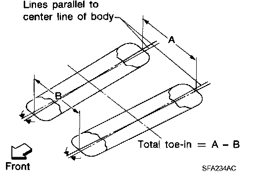TOE-INToe-in is preset at factory and cannot be adjusted. Measure toe-in using following procedure. If out of specification, inspect and replace any damaged or worn rear suspension parts.