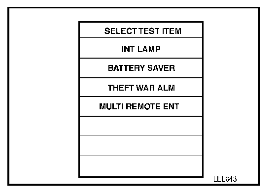 6. Perform each diagnostic item according to "DIAGNOSTIC ITEMS APPLICATION". Refer to BCS-5, "DIAGNOSTIC ITEMS APPLICATION". Scan Tool Testing and Procedures