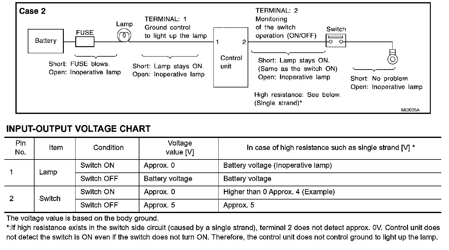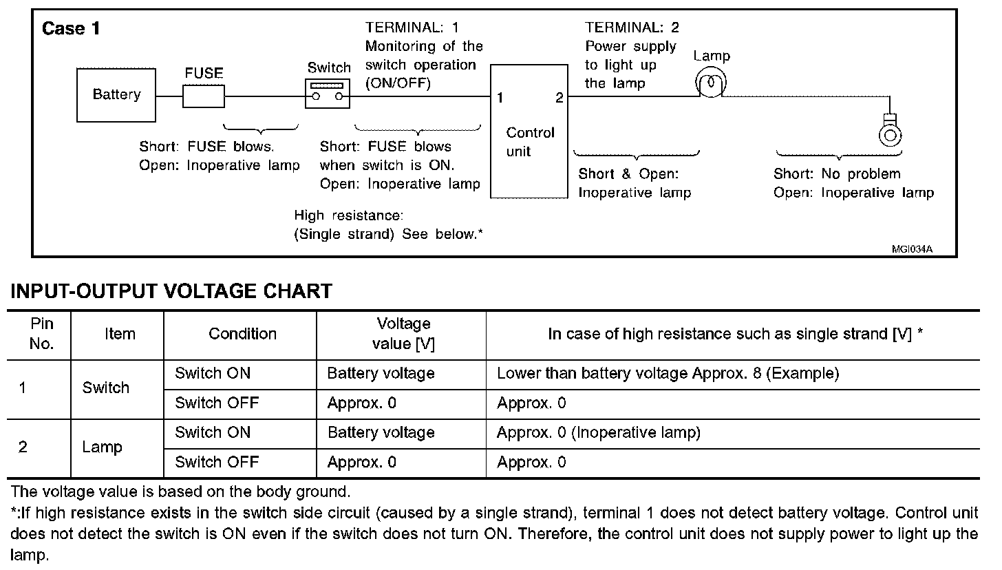 - When using a DMM, be careful not to let test probes get close to each other to prevent the power transistor in the control unit from damaging battery voltage because of short circuiting.
