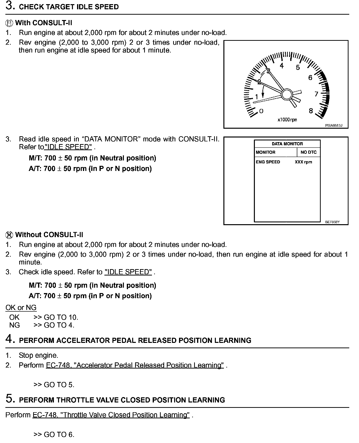 3. On automatic transmission equipped models, when checking idle rpm, ignition timing and mixture ratio, checks should be carried out while shift lever is in P or N (A/T), Neutral (M/T) position.