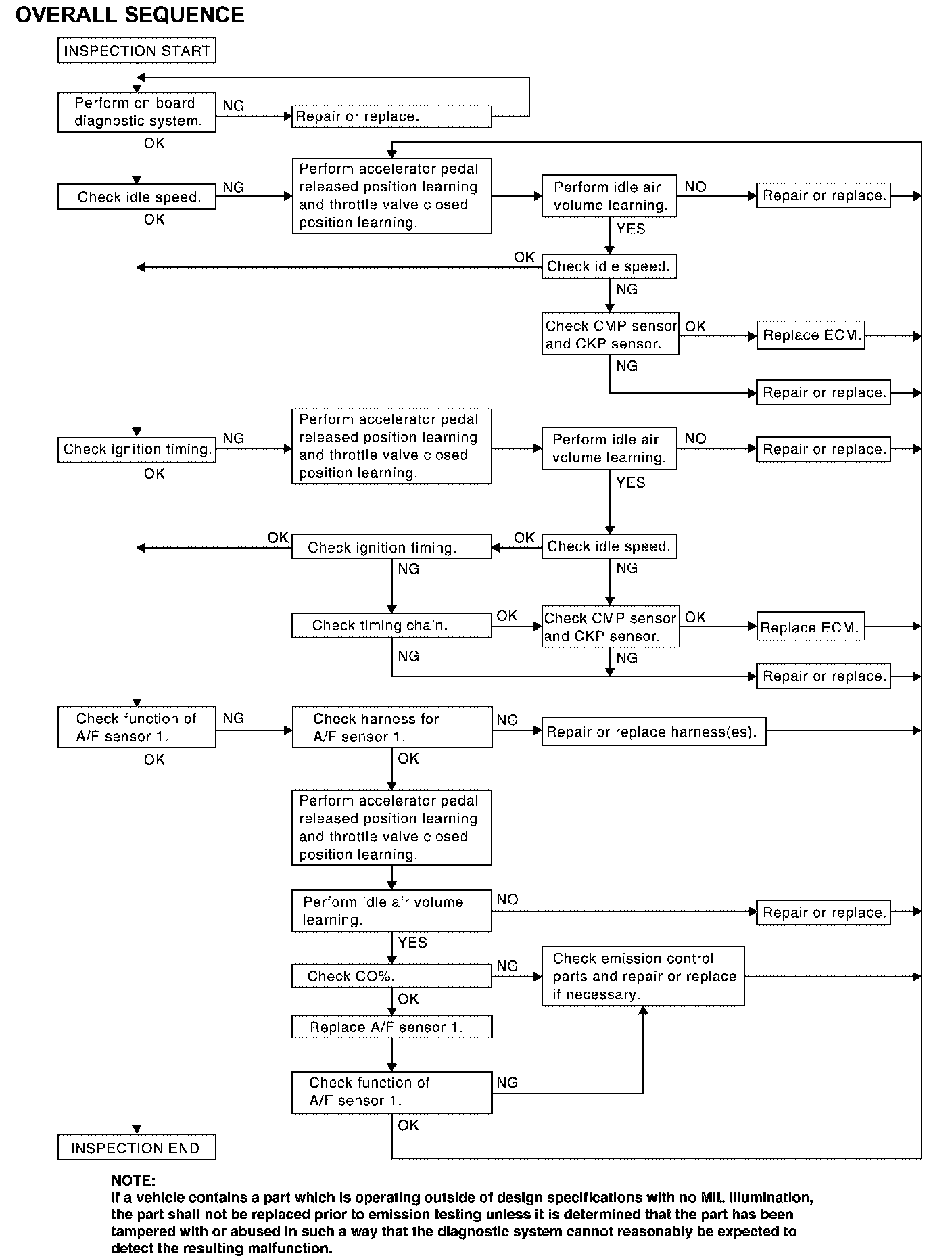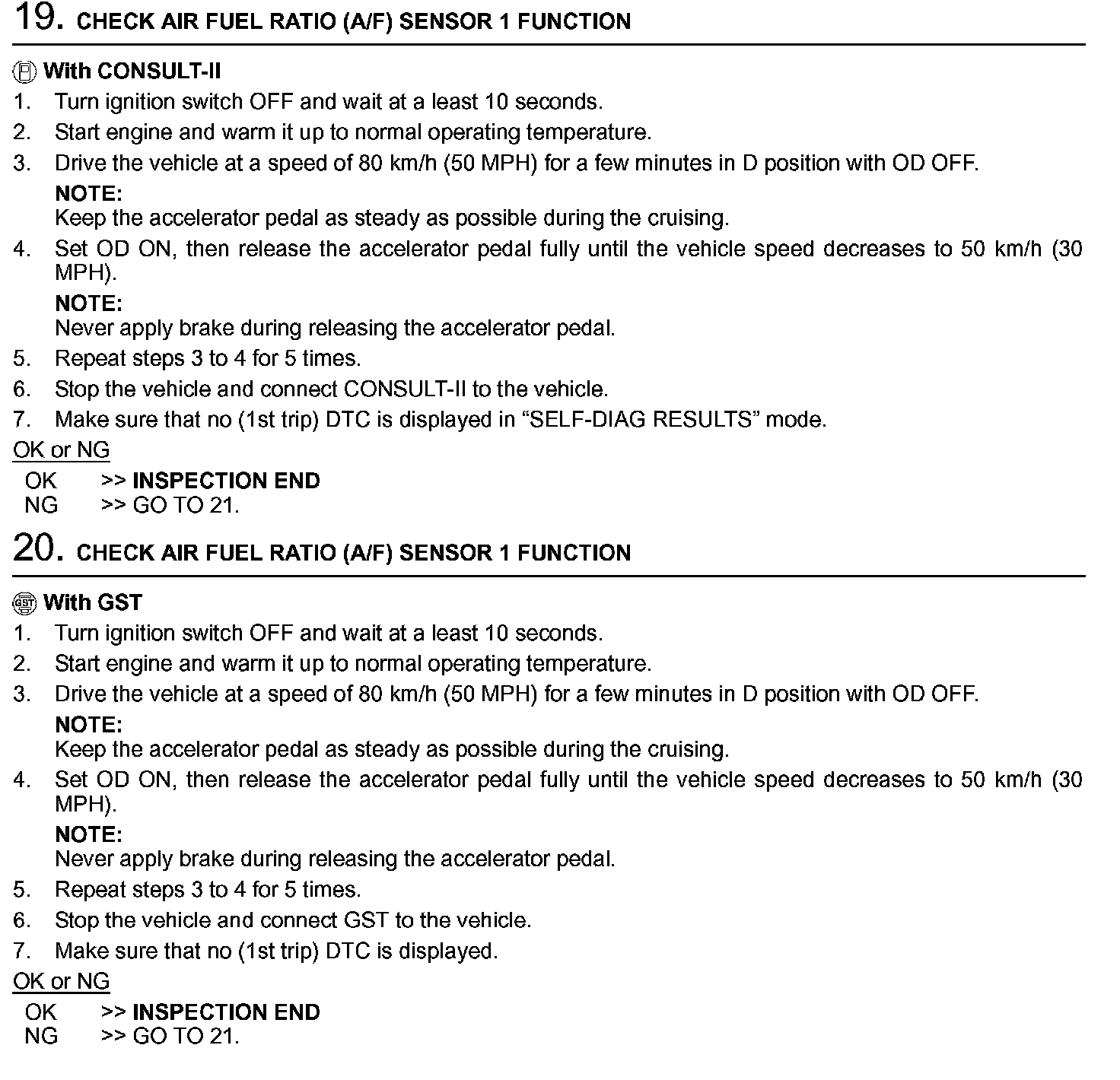 2. On air conditioner equipped models, checks should be carried out while the air conditioner is OFF.