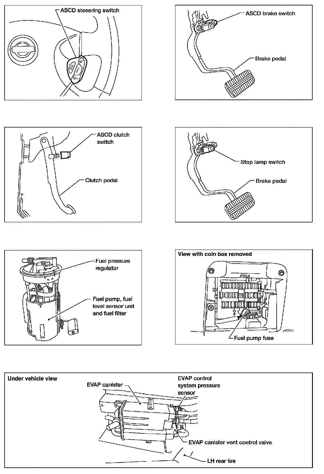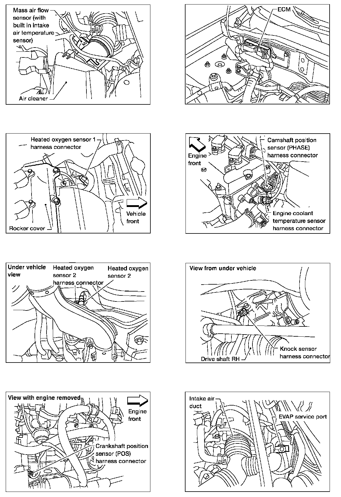 Engine Control Component Parts Location (A/T Models ULEV and M/T Models):