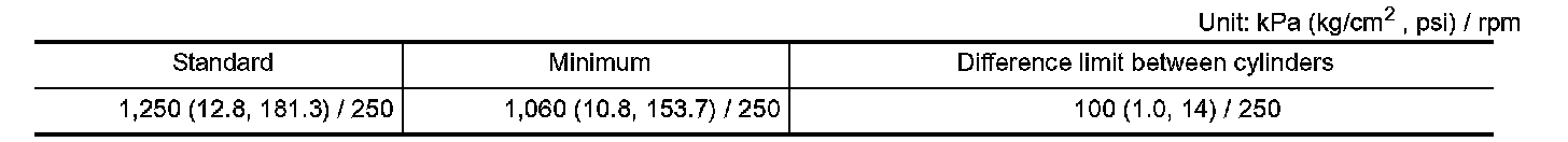 ^ If compression pressure is below minimum value, check valve clearances and parts associated with combustion chamber (valve, valve seat, piston, piston ring, cylinder bore, cylinder head, cylinder head gasket). After the checking, measure compression pressure again.