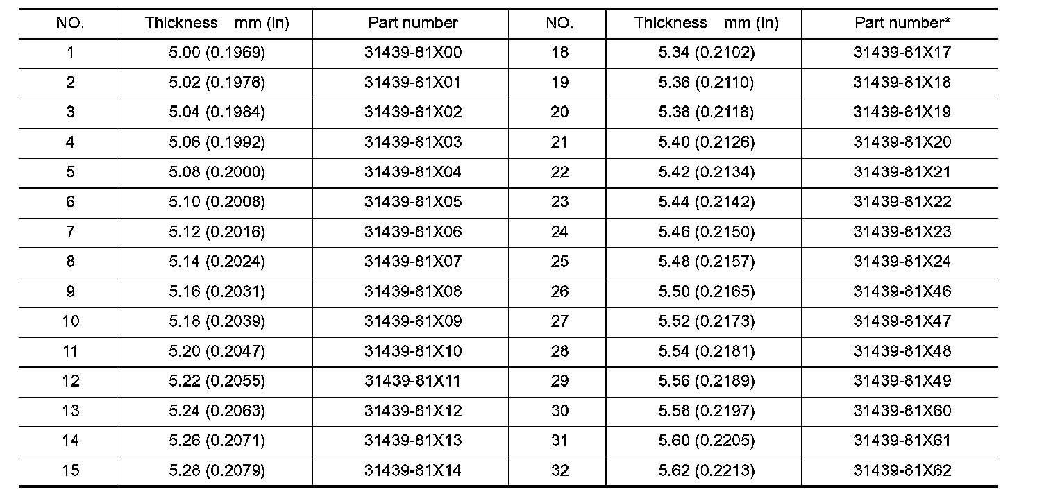 REDUCTION PINION GEAR BEARING ADJUSTING SHIMS