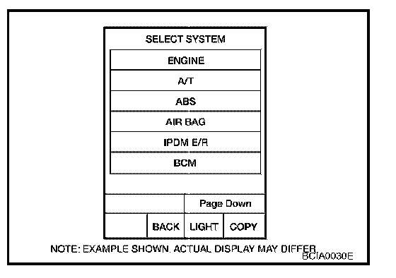 3. Touch "BCM" on "SELECT SYSTEM" screen.