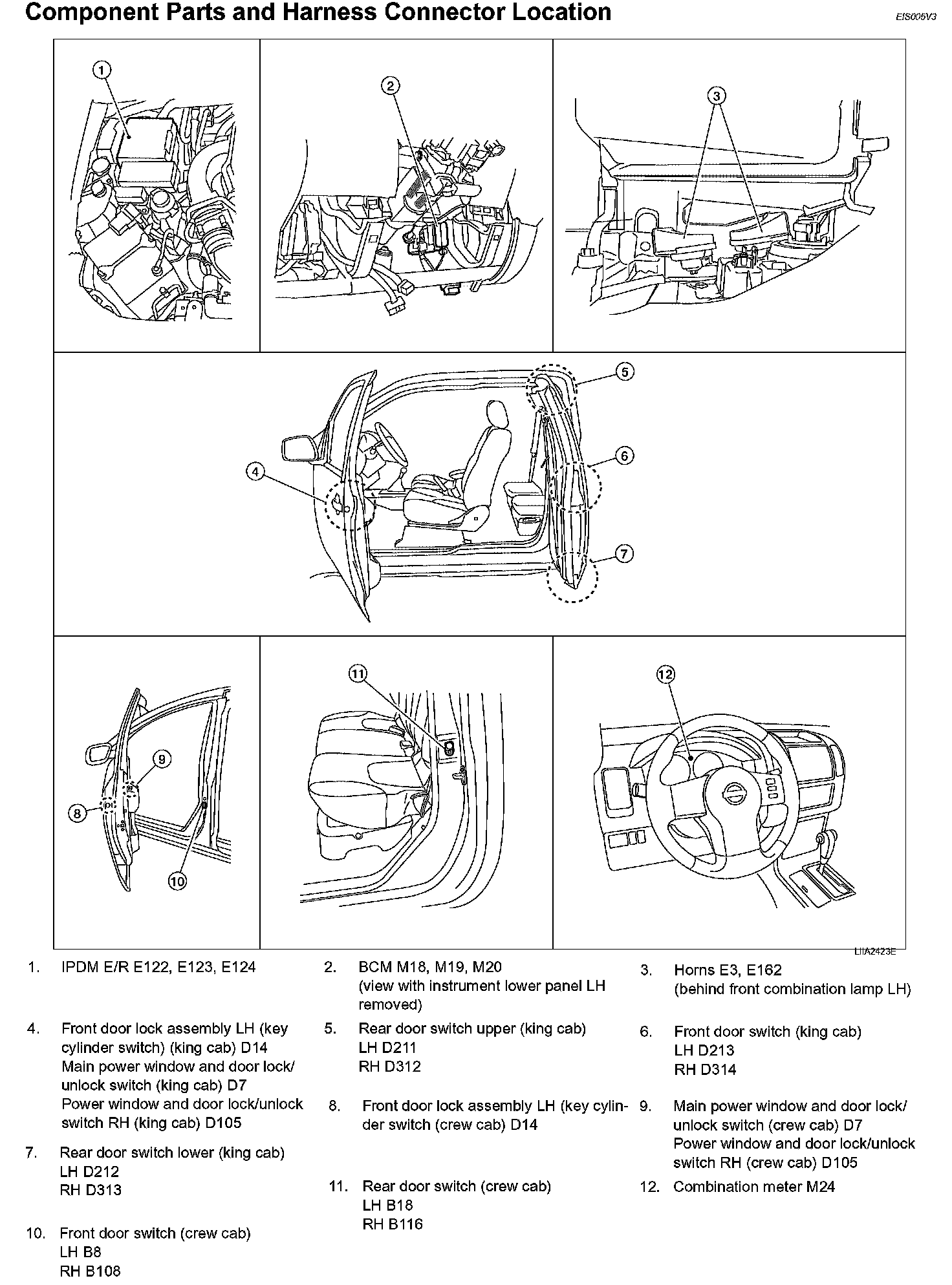 Component Parts And Harness Connector Location: