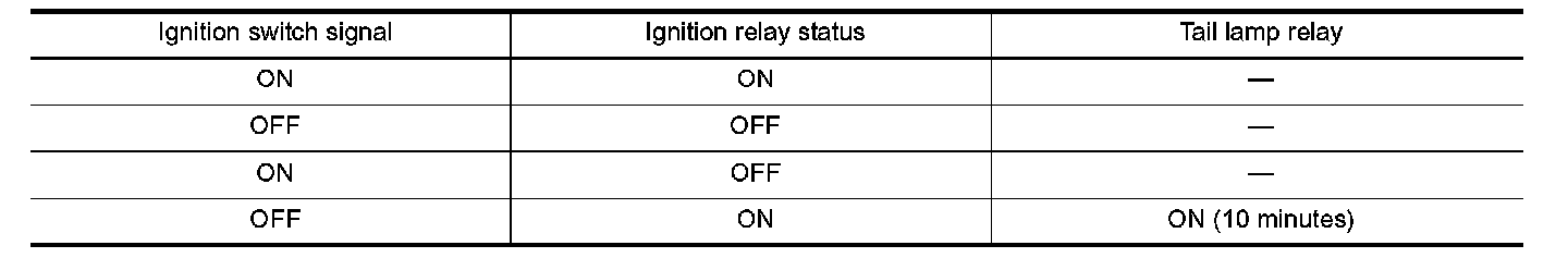 - When the state of the integrated ignition relay does not agree with the state of the ignition switch signal received via CAN communication, the IPDM E/R activates the tail lamp relay.