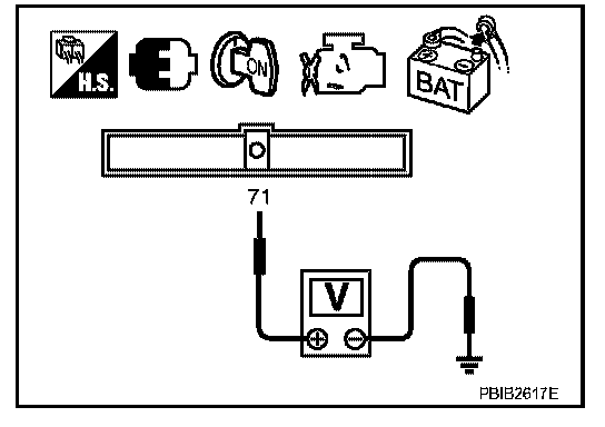 5. Check voltage between ECM terminal 71 (battery current sensor signal) and ground.