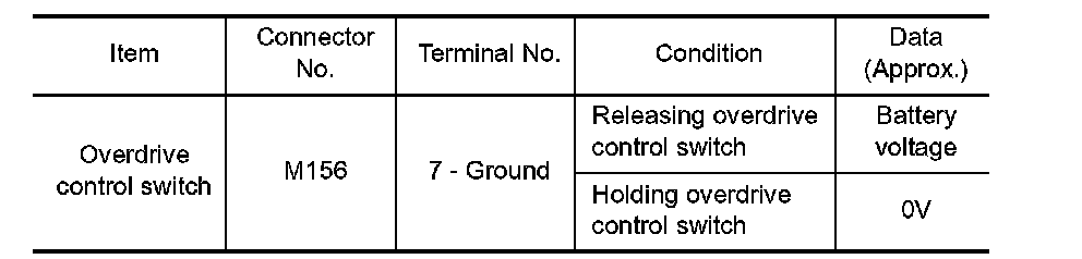 OVERDRIVE CONTROL SWITCHCONSULT-II Reference Value: