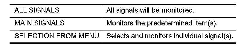 4. When "SELECTION FROM MENU" is selected, touch items to be monitored. When "ALL SIGNALS" is selected, all the items will be monitored. When "MAIN SIGNALS" is selected, predetermined items are monitored.