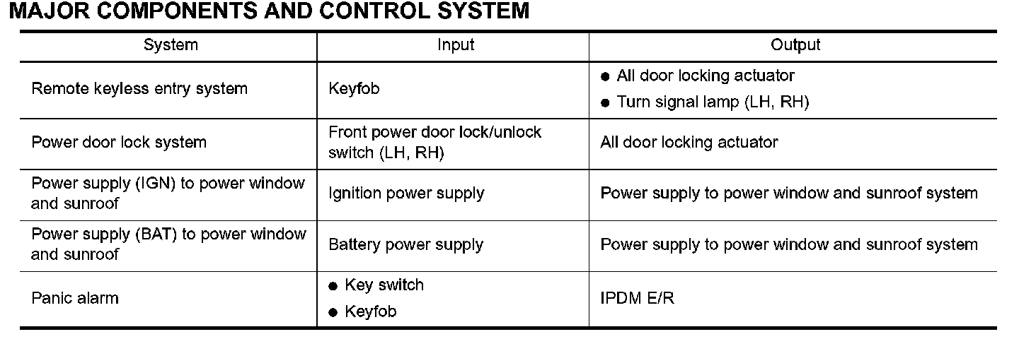 - Power window system. (NOTE)