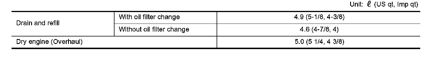 ENGINE OIL CAPACITY (APPROXIMATE)