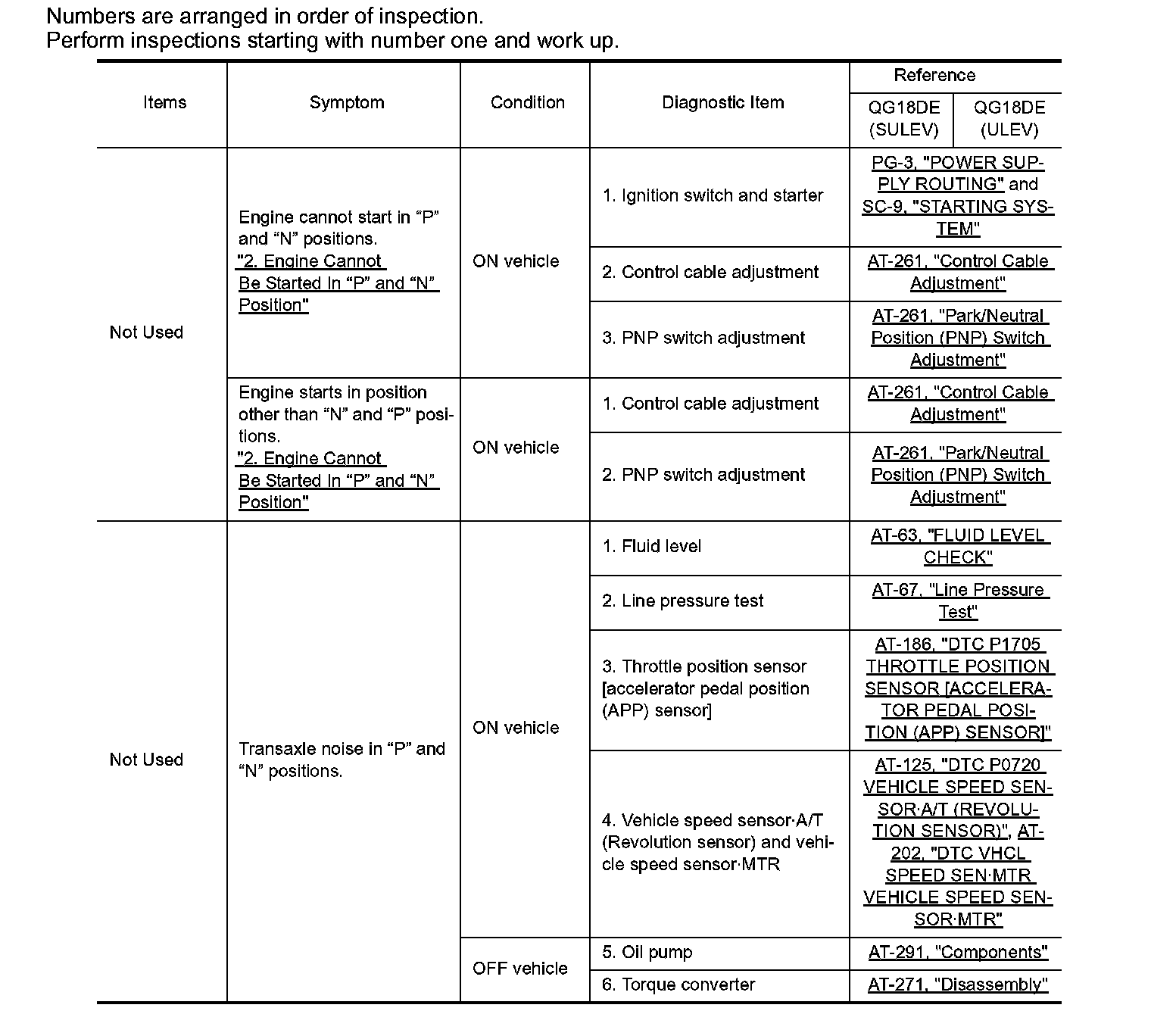 Perform inspections starting with number one and work up.