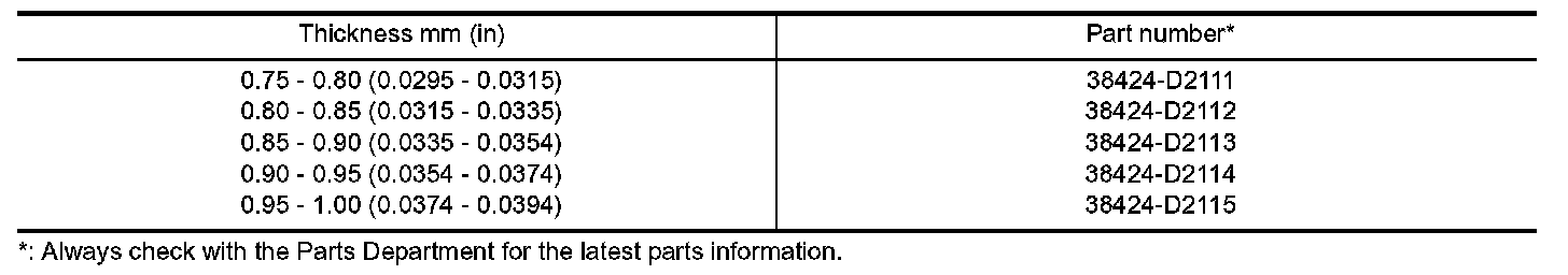 Table For Selecting Differential Side Bearing Adjusting Shim:
