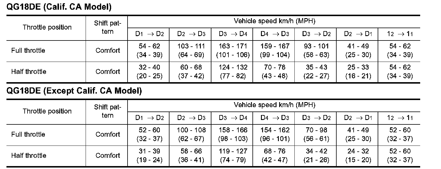 VEHICLE SPEED WHEN SHIFTING GEARS: