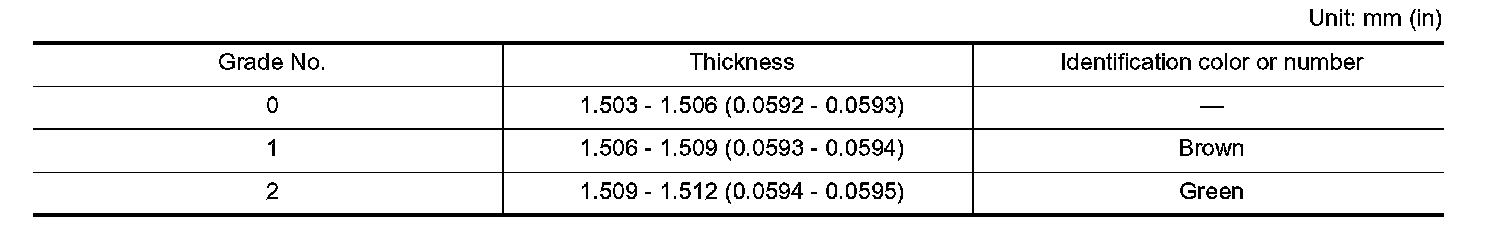 ^ If a new bearing, crankshaft or connecting rod is replaced, select connecting rod bearing according to the following table.