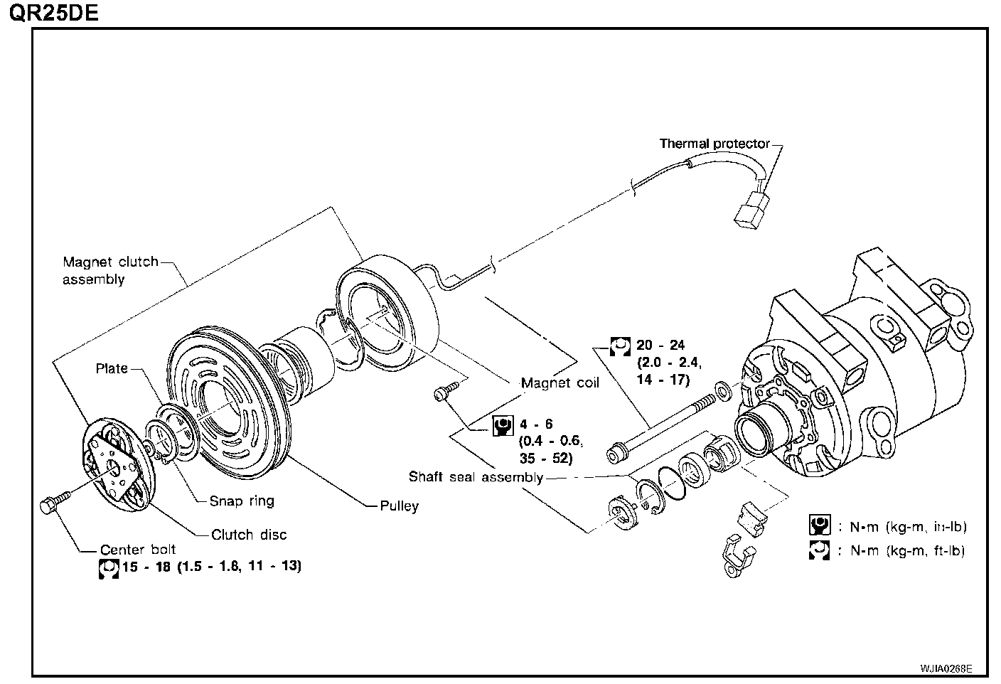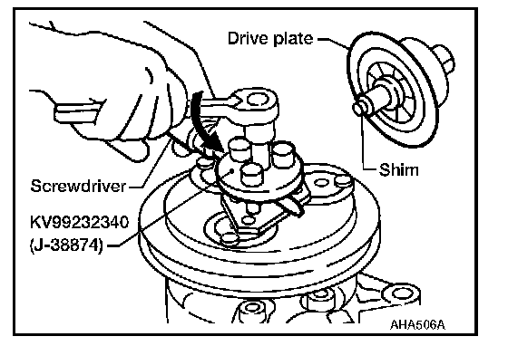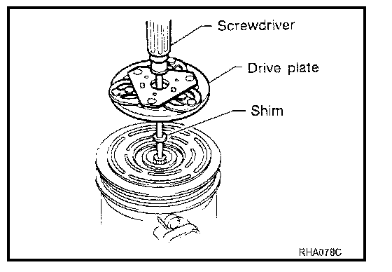When replacing compressor clutch assembly, always conduct the break-in operation. This is done by engaging and disengaging the clutch about 30 times. Break-in operation raises the level of transmitted torque.