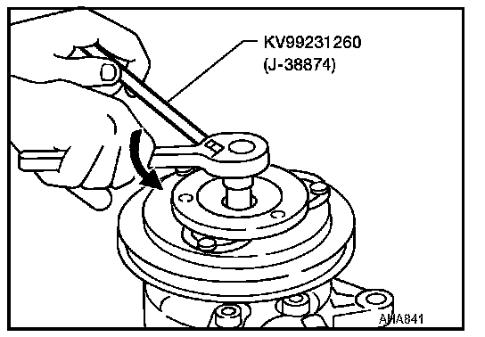 - When removing center bolt, hold clutch disc with clutch disc tool.